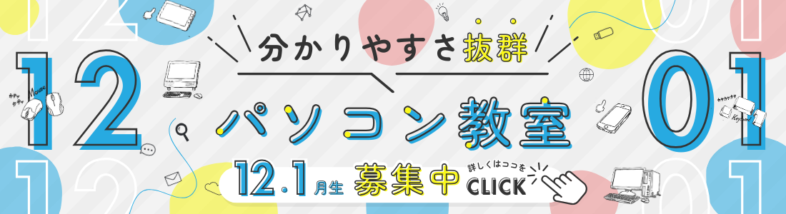 2025/12/19 パソコン2月生講座 (1月7日(水)10時からWeb・電話申込可能) 2025/12/06 年末の営業について 2025/11/27 単発受講、途中からのお申込みを受け付けている講座、あります! 2025/11/19 パソコン1月生講座 (12月3日(水)10時からWeb・電話申込可能) 2025/11/18 今求められる資格!3級FP受検対策講座、始まります