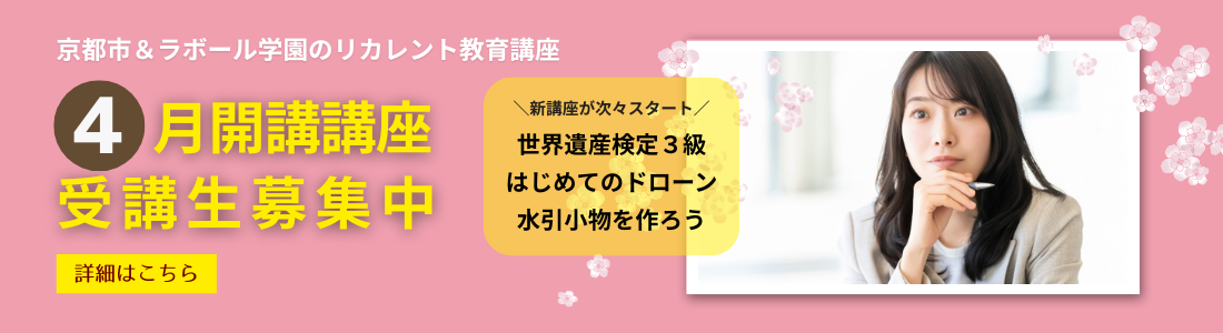 2026/03/11 チラシ作成を通してWordを学ぶ|初級ワード講座② ~写真・イラスト付きのチラシ作成~(Web・電話申込可能) 2026/03/05 2026年度春期 英会話教室の受講生募集 2026/02/28 単発受講 申込み受付中 2026/02/24 パソコン4月生講座 (3月4日(水)10時からWeb・電話申込可能) 2026/02/13 2026年度春期 京都労働学校の受講生募集