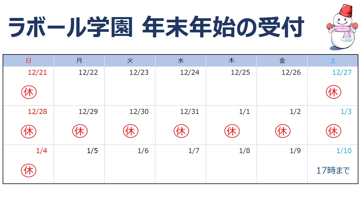 12/27㈯~1/4㈰の受付をお休みさせていただきます。