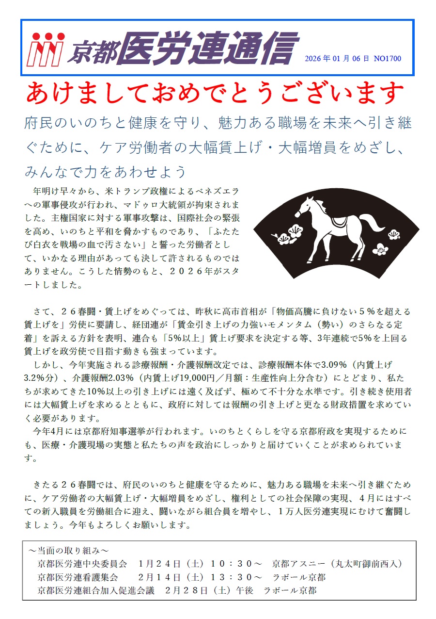 府民のいのちと健康を守り、魅力ある職場を未来へ引き継ぐために、ケア労働者の大幅賃上げ・大幅増員をめざし、みんなで力をあわせよう